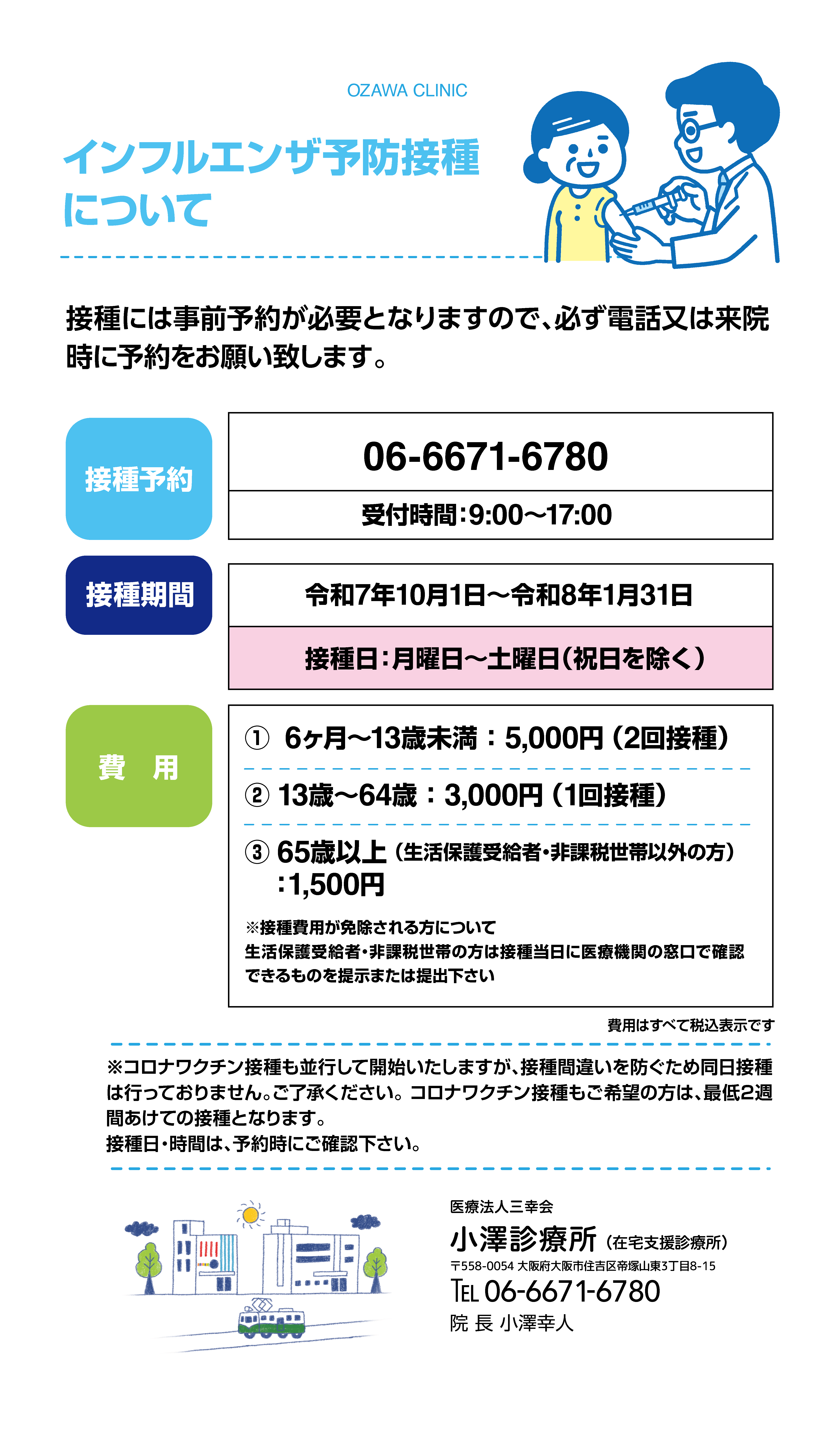 大阪市住吉区帝塚山の小澤診療所 [内科・小児科 (予防接種)・整形外来・糖尿病専門外来・在宅往診・訪問看護]